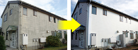 外壁リフォーム工事などを行わなくてもバイオ高圧洗浄を行っただけで新築時を思い出すようなキレイな美観を維持することが出来ます。アパートやマンションなどではローコストで定期的な美観維持が可能です。